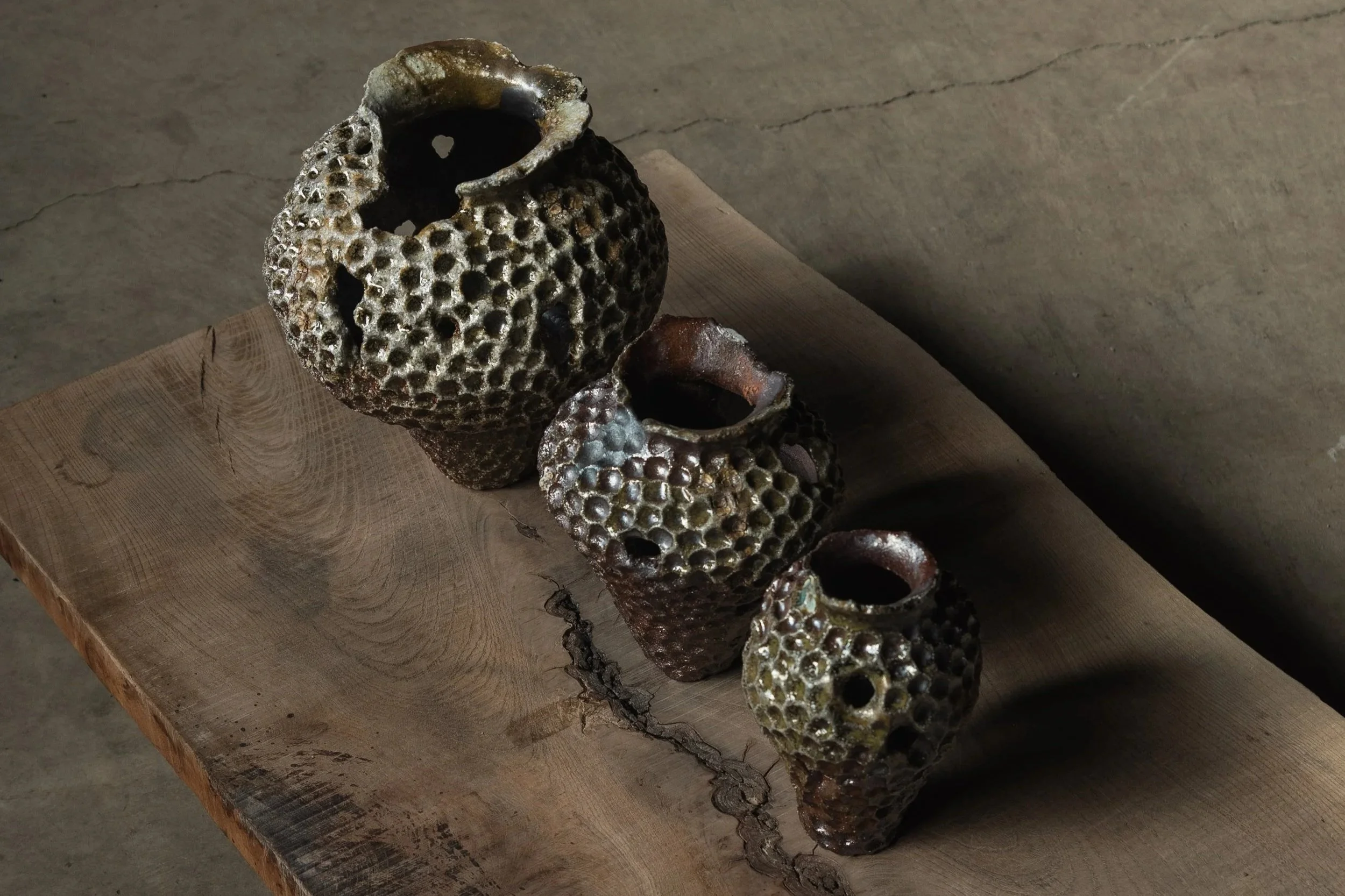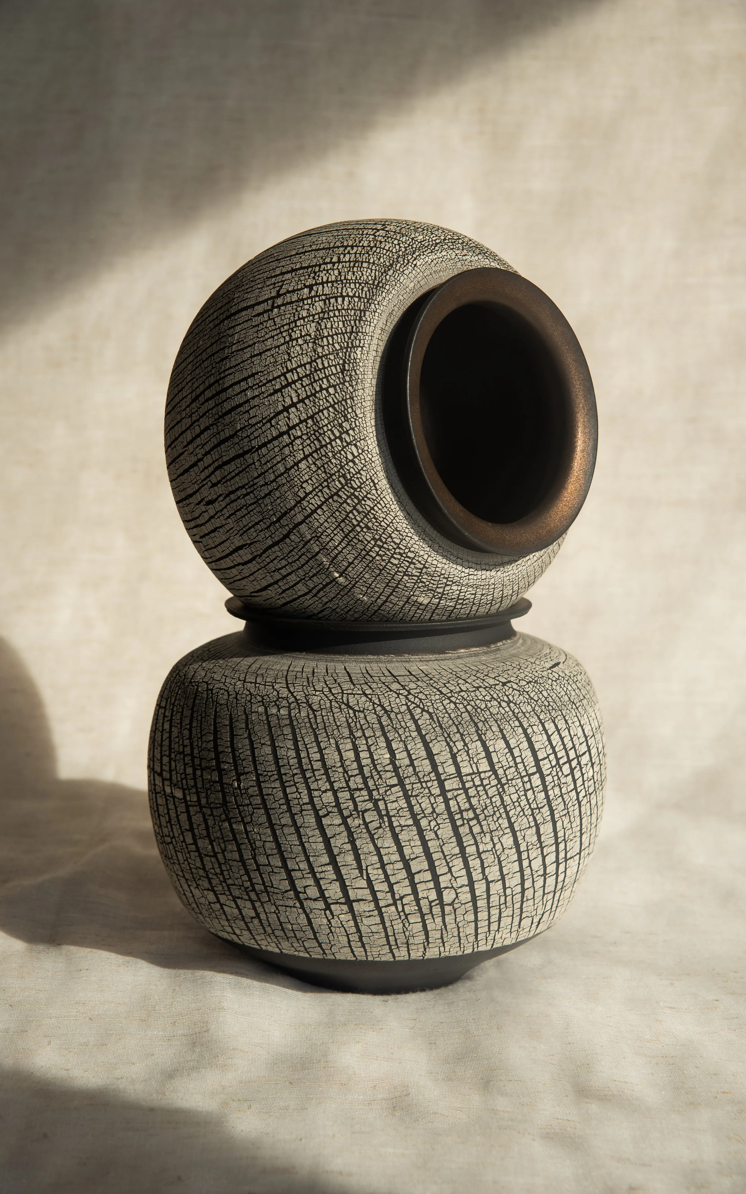 Her vessels embody a juxtaposition of strength and fragility—rugged yet refined, dark and light—mirroring the delicate contrasts woven throughout nature and our ever-evolving lives. She is drawn to what feels unearthed, ancient, and inherently wild.
